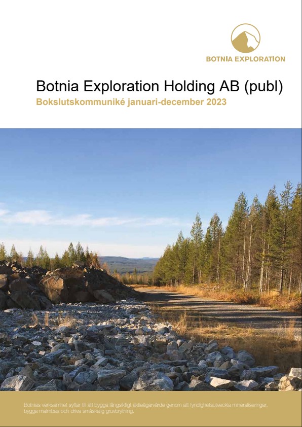 • Botnia Exploration har alla tillstånd på plats och arbetet med att starta Sveriges nästa guldgruva pågår. Bolaget kommer därmed inom en snar framtid att vara ett guldproducerande bolag.