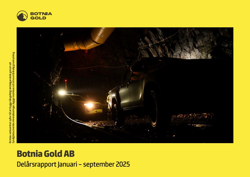 Delårsrapport från Botnia Gold AB avseende Q3 2025, perioden januari – september 2025. Stabil malmproduktion enligt plan möjliggör att årets sista anrikningskampanj startar enligt plan. Målet om 50 kton malm för 2025 kommer uppnås.