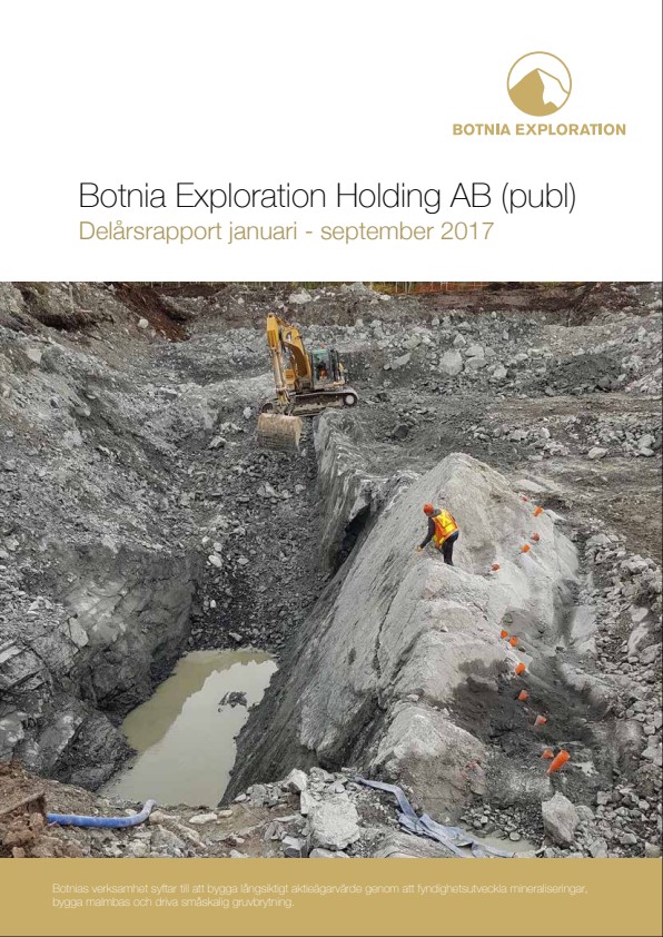 ● Bolaget planerar för fortsatta undersökningsborrningar i Bolagets satellitfyndigheter i Vindelgranseleområdet. Undersökningsborrningarna planeras att påbörjas under fjärde kvartalet 2017 och fortsätta kontinuerligt framgent.
