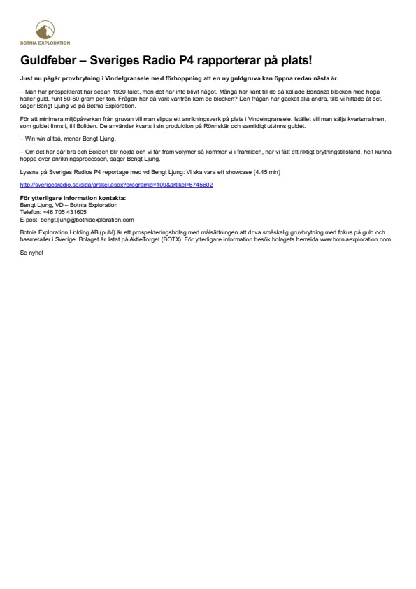 Botnia Gold AB (publ) är ett gruv- och prospekteringsbolag med målsättningen att driva småskalig gruvbrytning med fokus på guld och basmetaller i Sverige.